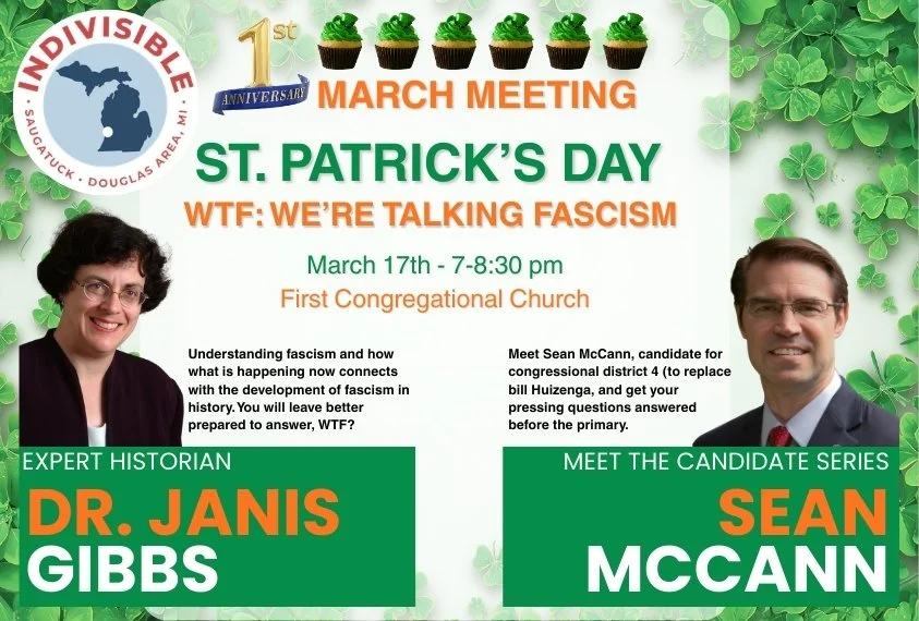 We’re the Saugatuck Douglas Area Indivisibles, a local nonpartisan grassroots group, part of the national Indivisible movement of millions of everyday people working to protect and strengthen our democracy.